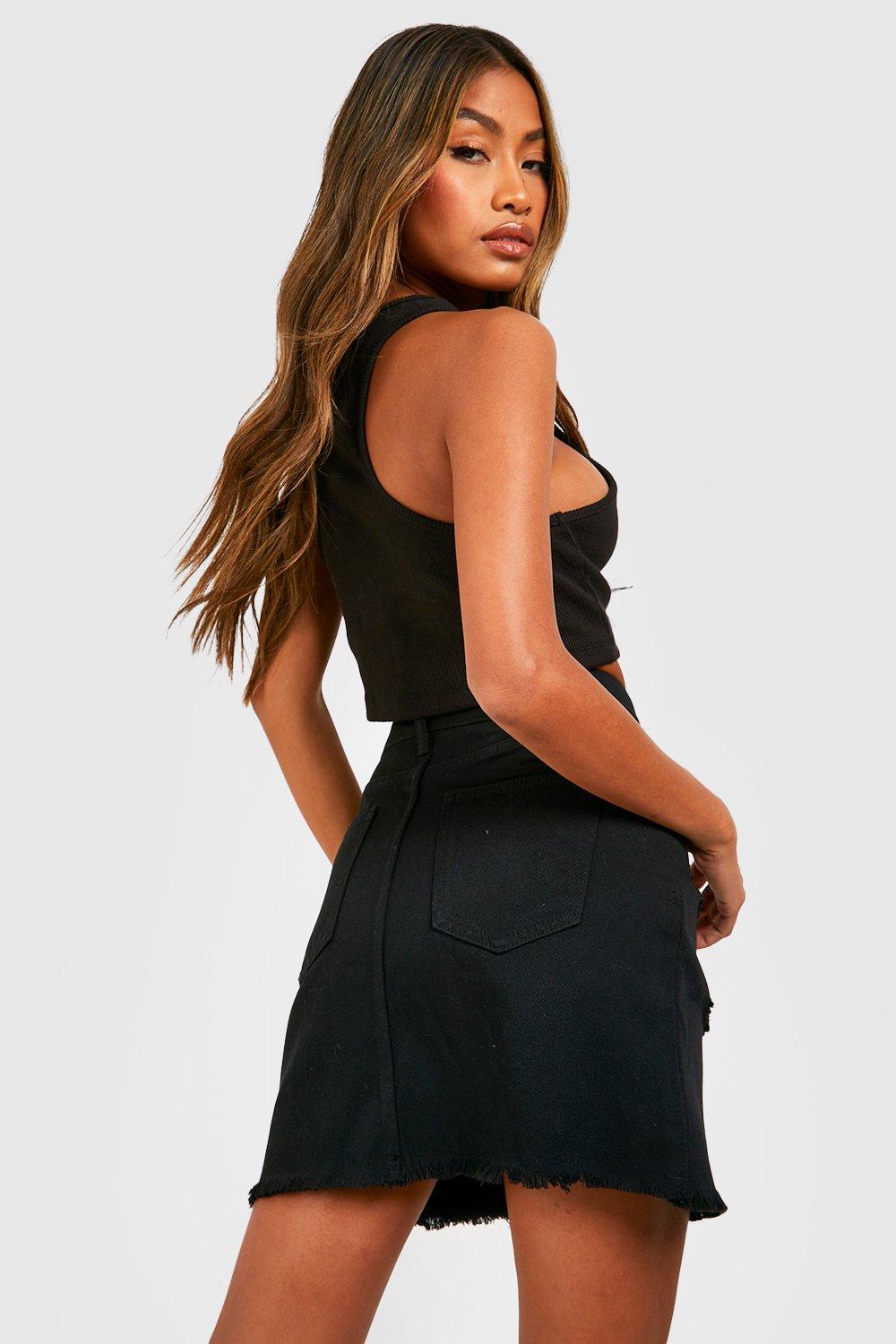 Product Name: Black ripped denim skirt plus size 2025