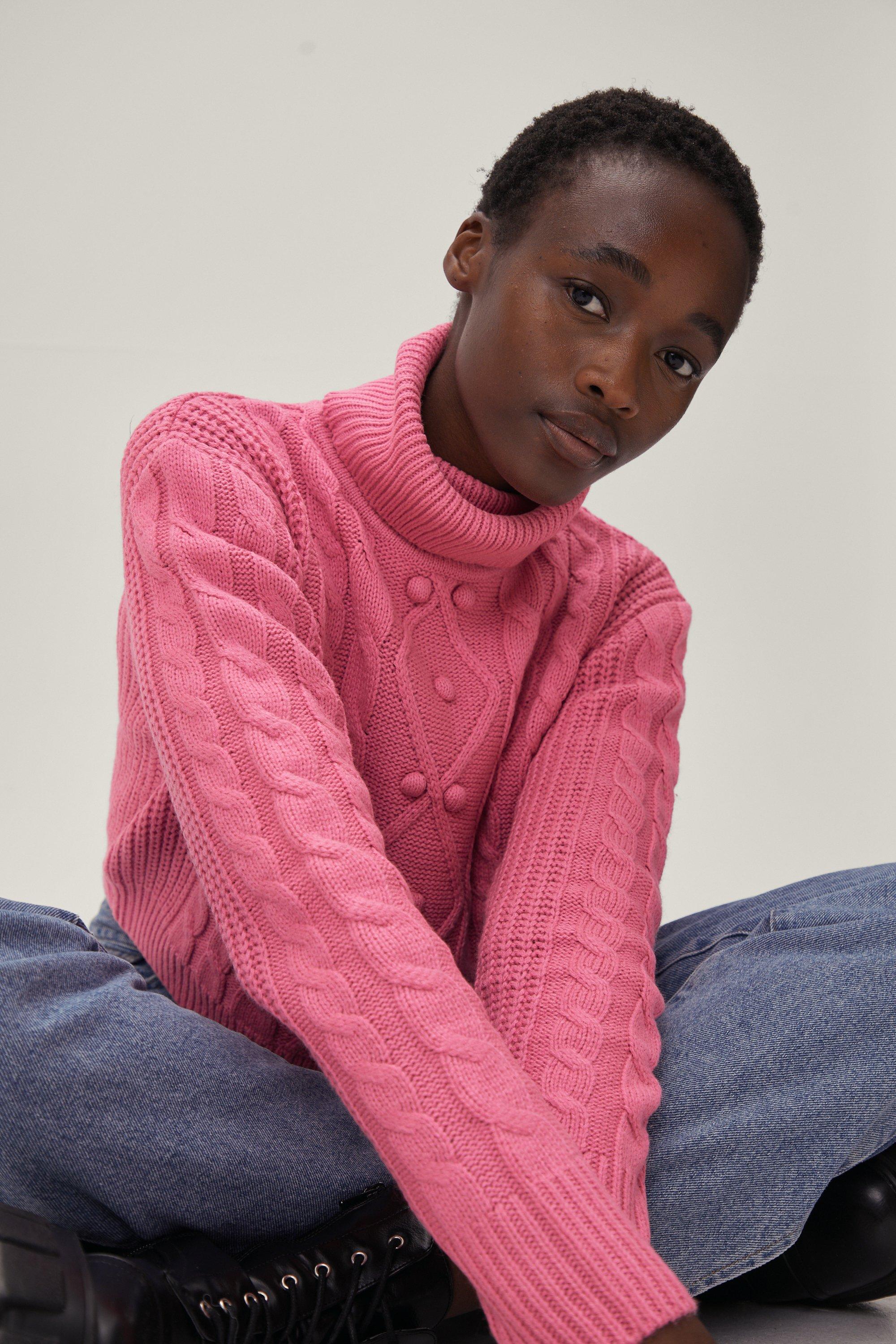 Product Name: Pink cable knit turtleneck sweater 2025